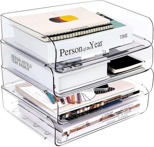Ongeopend, ok, Greentainer Bureau-organizer, stapelbare opbergbox voor schrijfgerei, enveloppen, schaar, A4-documenten, ruimtebesparende bureau-organizer voor thuis en op kantoor, transparant, B0BW8PR5JR