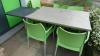 Terrastafels op zwartmetalen voet : 2 stuks L120xB80 cm en 3 stuks L70xB80 cm