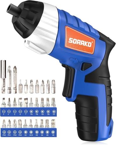 Ongebruikt, ok. SORAKO accuschroevendraaier, 6 Nm elektrische schroevendraaier 3,6 V met 30 accessoires, schroevendraaier met LED-lamp, 2 draairichtingen, batterij-indicator en oplader, professioneel voor doe-het-zelf, B09QM574ZF