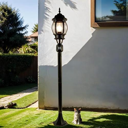 Ongeopend, in seal, Licht-Erlebnisse Brest Buitenstaande lamp met bewegingsmelder, glas, aluminium, in antiek goud, IP44, voor tuin, 123,5 cm, E27, lantaarn, kleine padverlichting, outdoor, B08XMCH77L