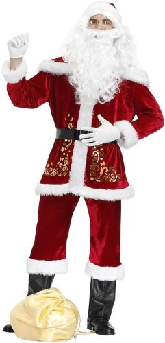 Lichte gebruikssporen, ok. Proumhang Kerstmankostuum voor heren, 9-delig, kerstkostuum voor volwassenen, fluweel, luxueus, rood, L, B08GC8YW7R