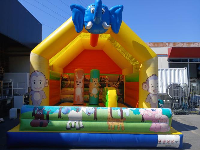 springkasteel olifant 4m x 5m, met dak, incl gibbons motor