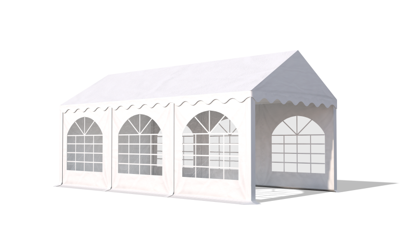 Het dakzeil is vervaardigd uit pvc van 500 g/m². Dit materiaal is vergelijkbaar met zeilen van vrachtwagens en is dus oerdegelijk, en bovendien ook UV-bestendig, brandwerend en volledig waterdicht. Deze professionele partytent wordt geleverd met afneembare zijwanden met extra grote ramen. Onze partytent is uniek omdat de zijwanden met elastieken aan het frame én met velcro aan de flappen van het dakzeil gemonteerd worden, wat zorgt voor een 100% winddichte tent. Deze flappen lopen van het dakzeil naar de grond en bedekken de verticale buizen van de partytent. Onze partytenten zijn uniek omdat deze flappen ook effectief aan de zijwanden vastgemaakt worden.