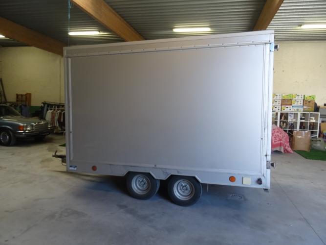 Merk: W.M., type: V2-13-2700, vv. stopcontacten en verlichting. 3400x1950x2550, vv. reservewiel