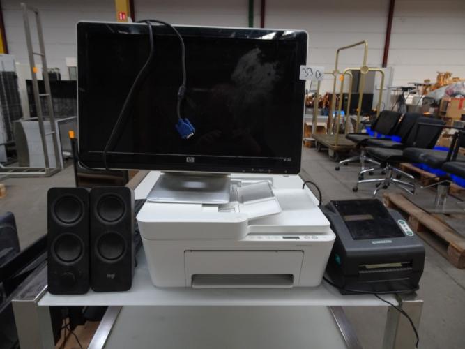 oa: printer HP, etikettenprinter Metapace, 2x luidspreker Logi, Scherm HP