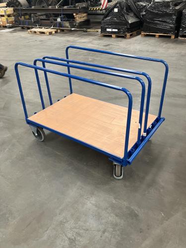 Merk Variolift - Totale lengte: 1310mm - Totale breedte: 800mm - Totale hoogte: 380mm - Lengte van het laadvlak: 1200mm - Breedte van het laadvlak: 800mm - Type wielen: Rubber - Diameter van de wielen: 200mm - Met rem - Gewicht: 45kg - Conditie: Gebruikt maar zo goed als nieuw