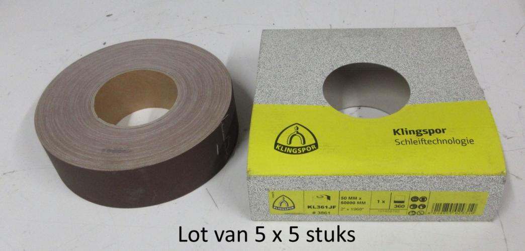 Lot van 5x 50m schuurpapierrollen Klingspor 3861 KL361 JF 50x50000 korrel 360
