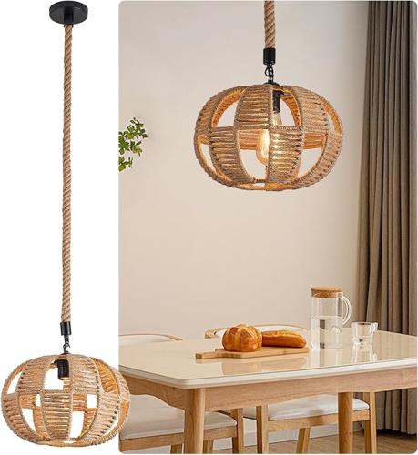 Ongeopend, in seal, SUCIKORIO Hanglamp Henneptouw E27, Boho Hanglamp Eettafel Henneptouw Industriële Retro Plafondlamp Woonkamer Hangend Ø30cm Voor Eetkamer en Slaapkamer, Zonder Gloeilamp, B0CPS9M6D3