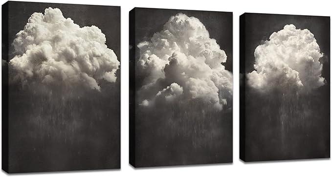 Ongeopend, in seal, FajerminArt 3 stuks moderne zwart-wit canvas muurkunst minimalistische abstracte witte wolken foto's canvas print schilderijen voor woonkamer slaapkamer kantoor klaar om op te hangen, B0CRPBBXD2
