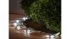 Deze schitterende design spots kunnen overal en snel geplaatst worden. Ze kunnen de tuin op een sfeervolle manier verlichten, maar ook het terrras, een pad of voor een praktische verlichting van een oprijlaan zorgen. Met deze design spots creëer je op snelle wijze zeer unieke licht decoraties welke de tuin direct sfeervol zullen maken. Het grote voordeel van deze grondspots is dat er geen ondergrondse kabels aangelegd hoeven te worden. De spots hebben een schemersensor en zijn zon oplaadbaar, de verlichting gaat automatisch aan wanneer het donker wordt en zal ook zelf weer uitgaan wanneer het licht wordt. De ingebouwde zonnepanelen laden de spots binnen 4-6 uur weer volledig op. De brandtijd bedraagt vervolgens 16 a 18 uur na een volle oplading. Type: Grondspots, Lichtbron: led, inbegrepen, lichtkleur: helder wit, IP67 spatwaterdicht. Afmetingen ca 12 x 4 cm, maximale belasting 500 Kg, Conditie: Nieuw