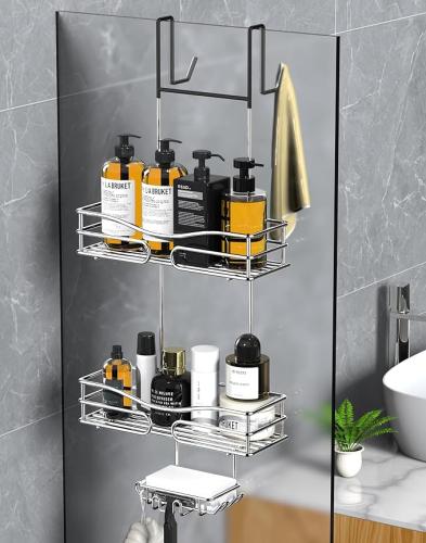 Ongebruikt, ok. Cooeco Shampoohouder om op te hangen – doucherek om op te hangen roestvrij, doucheplank met zeephouder en 6 haken voor de badkamer, voor badkamer (5,4 cm) breed), B0BQBNK3TZ