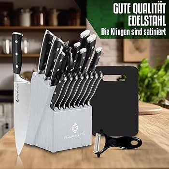 Ongeopend, ok, PLATINUM GOLD 20-delig messenblok met mes en slijper, keukenmessenset met zelfslijpend blok, luxe koksmessenset voor precisie, duurzaamheid en elegantie, B0CXV2TL4F