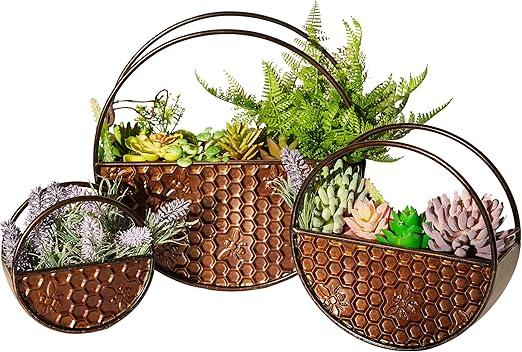 Ongeopend, set van 3 Ronde Brons Muur Bloempot, Vaas Metalen Planter, Indoor Outdoor K349B01 , B0CJXQ7T2N