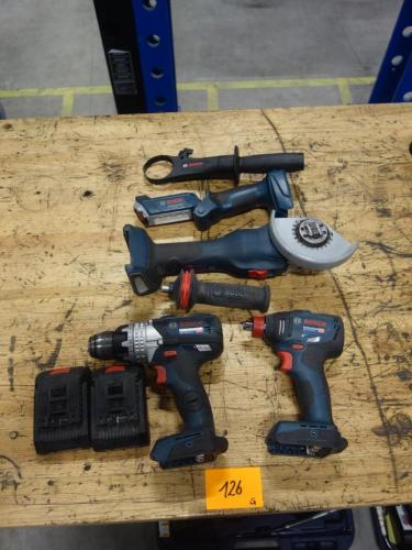 boormachine GSR, slagmoersleutel GDX, haakse slijper GWX, zaklamp GLI, 2x accu, lader,...