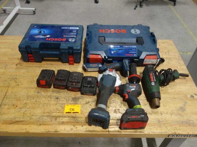 Slagmoersleutel GDX, haakse slijper GWX, warmtepistool GHG,warmtepistool UniversallHeat 600, zaklamp GLI, 5x accu, ...