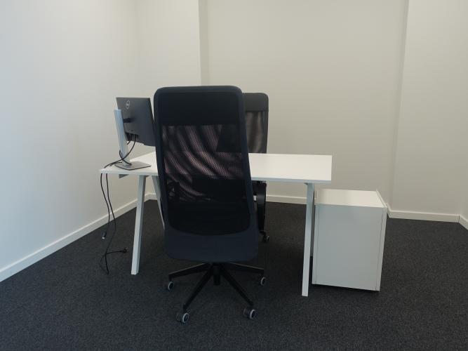 vv: tafel (1600x800x750), 2x stoel, scherm, kast met inhoud