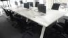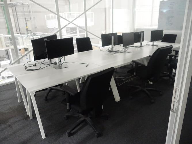 4200x1400, vv: 4x tafels, 6x schermen, 8x stoel, notitiebord