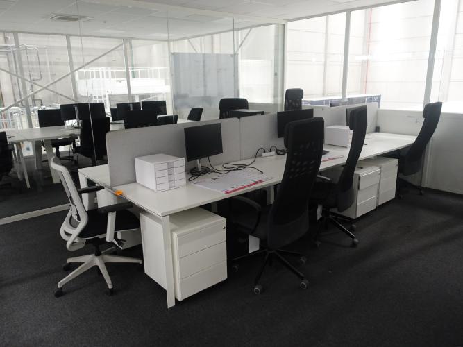 4200x1650, vv: 6x tafel, 6x scherm , 6x stoel, 5x verrijdbaar kastje