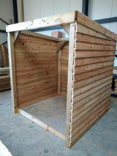 schuilhut 1.80 x 3.60 geimpregneerd grenen met 3 gesloten wanden wordt geleverd als bouwpakket bevestigingsmateriaal inbegrepen excl nietjes dakplaten niet inbegrepen.