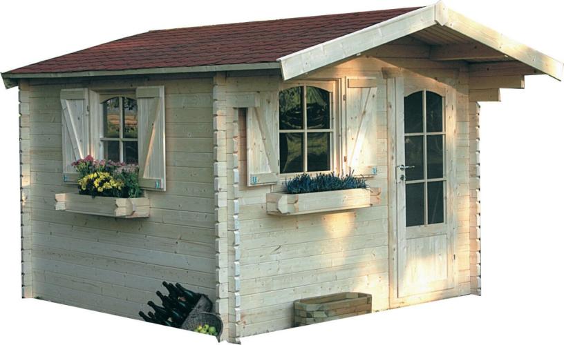 het tuinhuisje Servoz is een traditionele blokhut uit gecertificeerd noord europees vurenhout,de ramen beschikken over praktische en elegante luikjes,de versterkte dikte van de muren zorgt voor een betere isolatie,afmetingen: 2980 x 2980 x2392 mm,fundament:3980 x 2980 mm,oppervlakte:8.88m2,binnenoppervlakte:7.44m2,wanddikte:40mm,type dak:zadeldak met shingels,materiaal: onbehandeld te behandelen 31.10m2, gratis levering aan huis een tiental dagen voor de levering wordt u geinformeerd over de leverdatum.