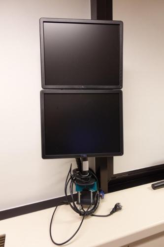 Vertical mounted dual monitor base, with 2x 17" Dell monitor
