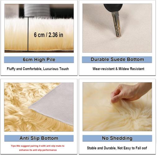 Ongeopend, HARESLE Rond schapenvacht kunstbont tapijt, zacht slaapkamertapijt, wasbaar woonkamertapijt, pluizig rond kinderkamer tapijt (lichtgeel, 100 cm), B0BYNXSKQ6