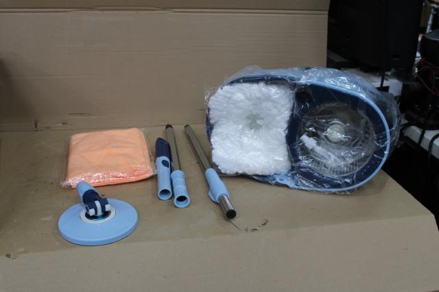 Ongebruikt, ok, MASTERTOP Microvezel Mop-set , roestvrijstalen emmer , 145 cm en 5 mops (blauw)