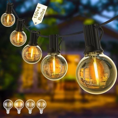 Ongebruikt, getest en werkend, ok, Yuusei Outdoor lichtsnoer, 80M buitenverlichting, IP45 netstroom tuinverlichting met 100+4 G40 LED-lampen schokbestendig voor hek, terras,B0DM5FCRF6