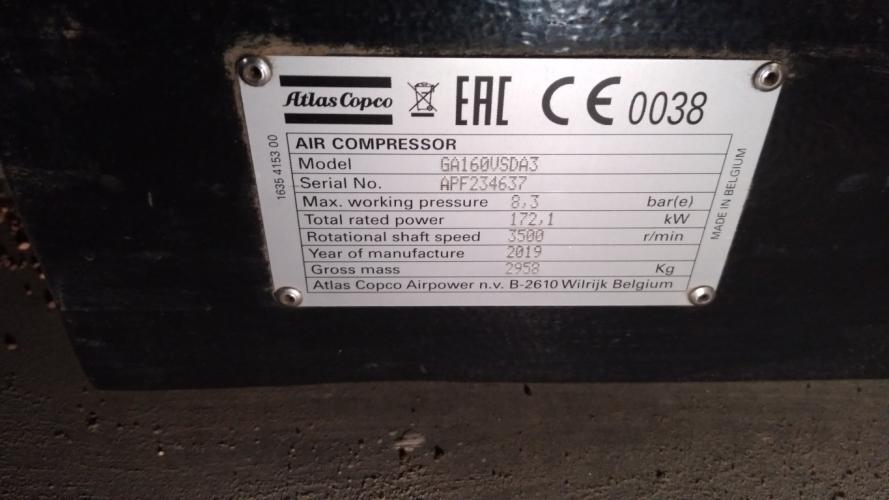 type: ga160vsda3, yoc: 2019, weight: 2958kg, pressure: max. 8,3bar