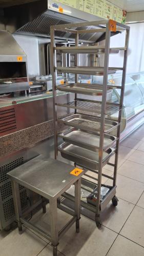 RVS regaalwagen + RVS werktafel + RVS handwasser met kniebediening
