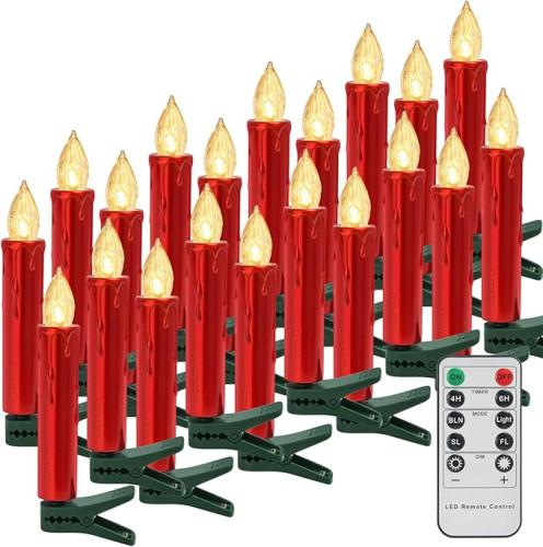 Ongeopend, ok, exclusief batterijen, 2 x 20 stuks ledkerstboomkaarsen, met afstandsbediening, timer, kerstkaarsen, dimbare kerstkaarsen, draadloos, elektrische kaarsen, staafkaarsen, vlamloze kerstkaarsen, rood, B0D12PZQ4G
