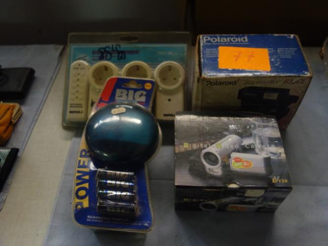Set met polaroit, digital videocamera, afstandbedieningsset, oplader