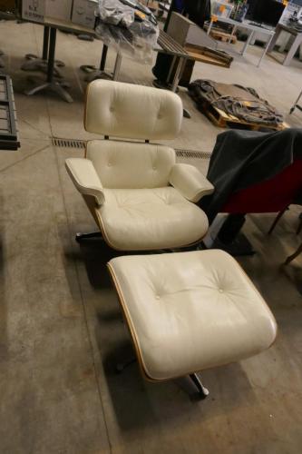 Klassieke Charles Eames-stijl loungestoel en voetbak, witte leder