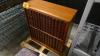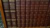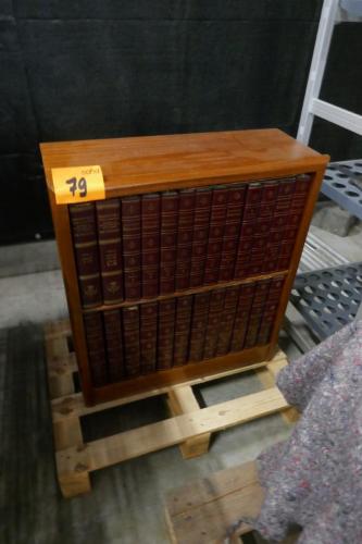Vintage houten boekenkast met reeks oude encyclopedia's