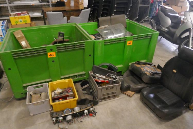 2 groene palletboxen met allerhande auto onderdelen voor old-timers ( zie fotos )