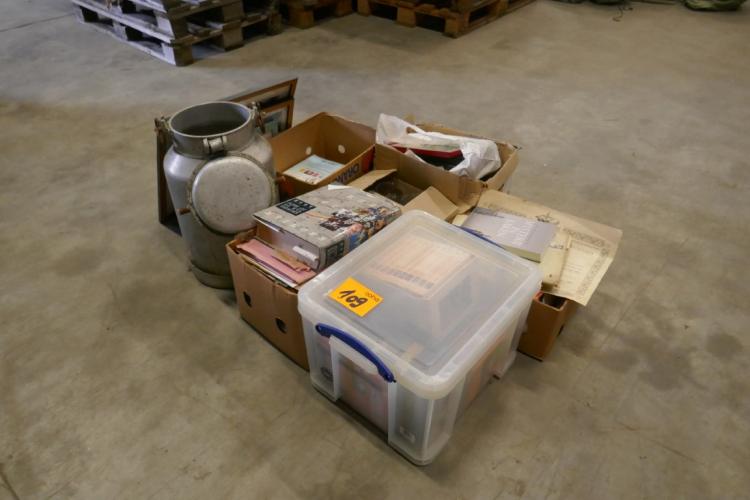 Vintage melkkan + diverse boeken en kaders