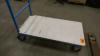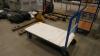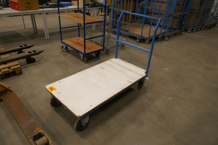 Stalen plateauwagen met houten legbord, duwbeugel en zwenkwielen