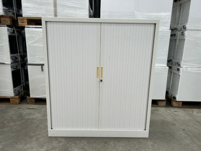 1x ROBBERECHTS Halfh Vert Roldeurkast H135xB120xD43 - Wit/Metaal, (V0406), met enkele gebruikssporen