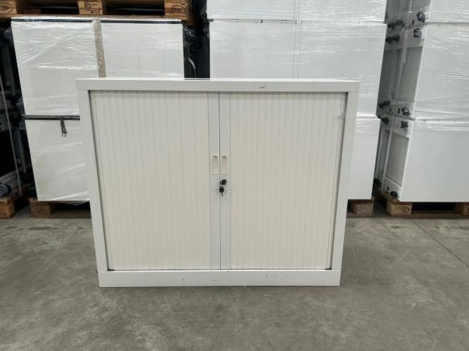 1x Halfh Vert Roldeurkast H100xB120xD43 - Wit/Metaal, (V0410), met enkele gebruikssporen