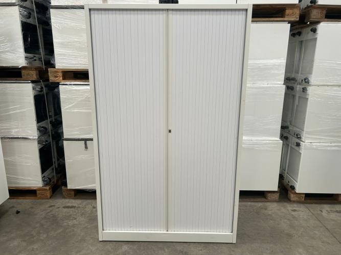 1x PAMI Hoge Vert Roldeurkast H195xB120xD45 - Wit/Metaal, Geen sleutel (V0416), met enkele gebruikssporen