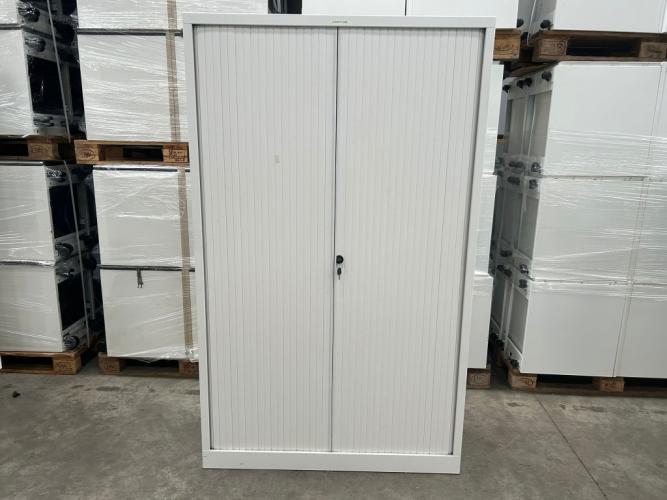 1x ROBBERECHTS Hoge Vert Roldeurkast H198xB120xD43 - Wit/Metaal, (V0417), met enkele gebruikssporen