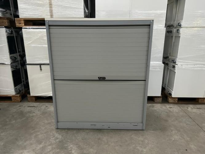 1x BULO Halfh Hor Roldeurkast H140xB120xD48 - Grijs/Metaal, Slot beschadigd (V0426), met enkele gebruikssporen