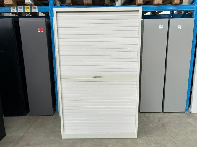 1x Hoge Hor Roldeurkast H197xB120xD45 - Wit/Metaal, Geen sleutel (V0435), met enkele gebruikssporen