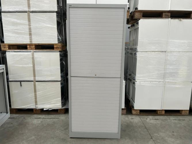 1x Q-BIC Hoge Hor Roldeurkast H198xB80xD45 - Grijs/Metaal, Op slot zonder sleutel (V0445), met gebruikssporen