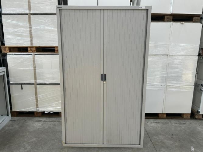 1x SANSEN Hoge Vert Roldeurkast H198xB120xD43 - Grijs/Metaal, Op slot zonder sleutel (V0446), met gebruikssporen