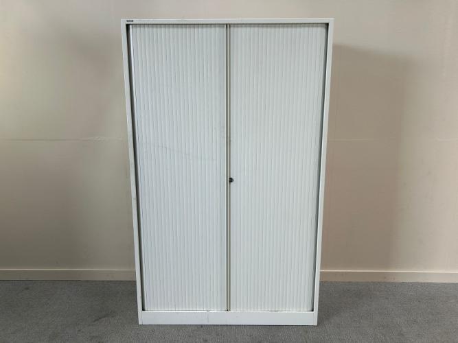 1x AHREND Hoge Vert Roldeurkast H193xB120xD45 - Wit/Metaal, Sleutel afwezig (V0308), met gebruikssporen, enkele krassen