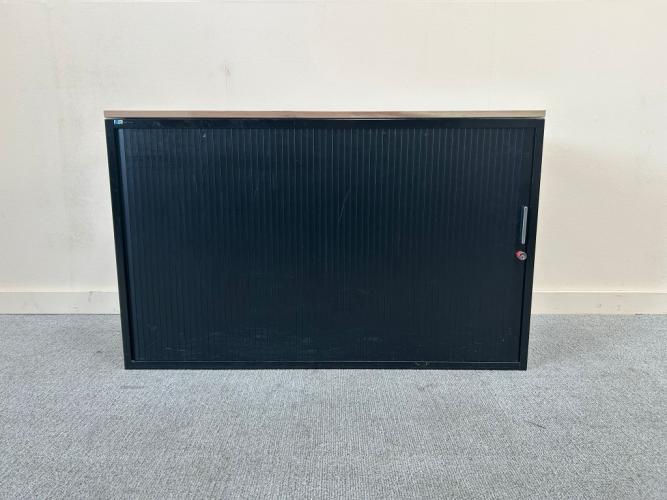 1x LISTA Lage Vert Roldeurkast H76xB120xD40 - Zwart/Metaal, Sleutel afwezig, top is mogelijk los (V0327), lichte krassen en gebruikssporen