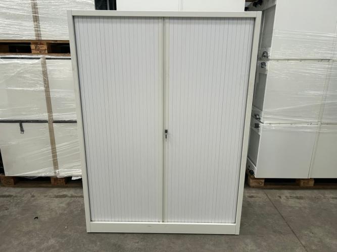 1x PAMI Hoge Vert Roldeurkast H165xB120xD45 - Wit/Metaal, (V0414), met enkele gebruikssporen