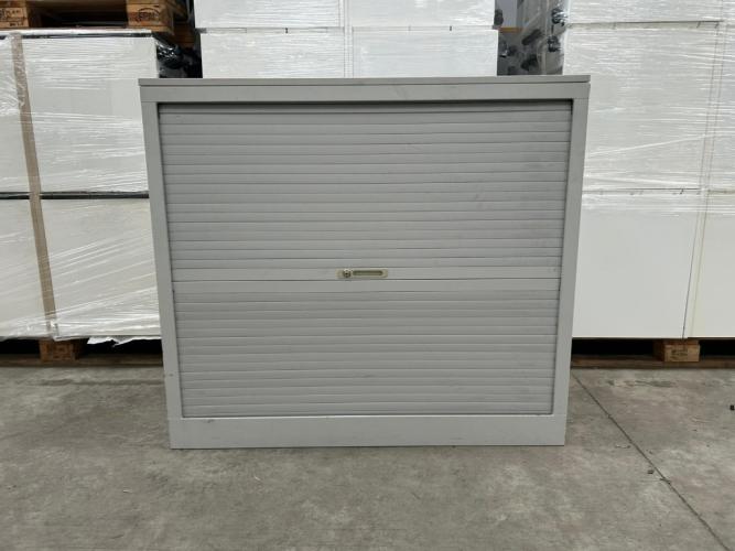 1x Halfh Hor Roldeurkast H108xB120xD46 - Grijs/Metaal, (V0450), met gebruikssporen
