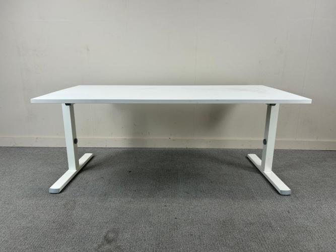 1x OSMOZ bureautafel H65xD80xB160 - Wit/Melamine/Wit metaal, enkele gebruikssporen, hoogteverstelmechanisme beschadigd (V0365)